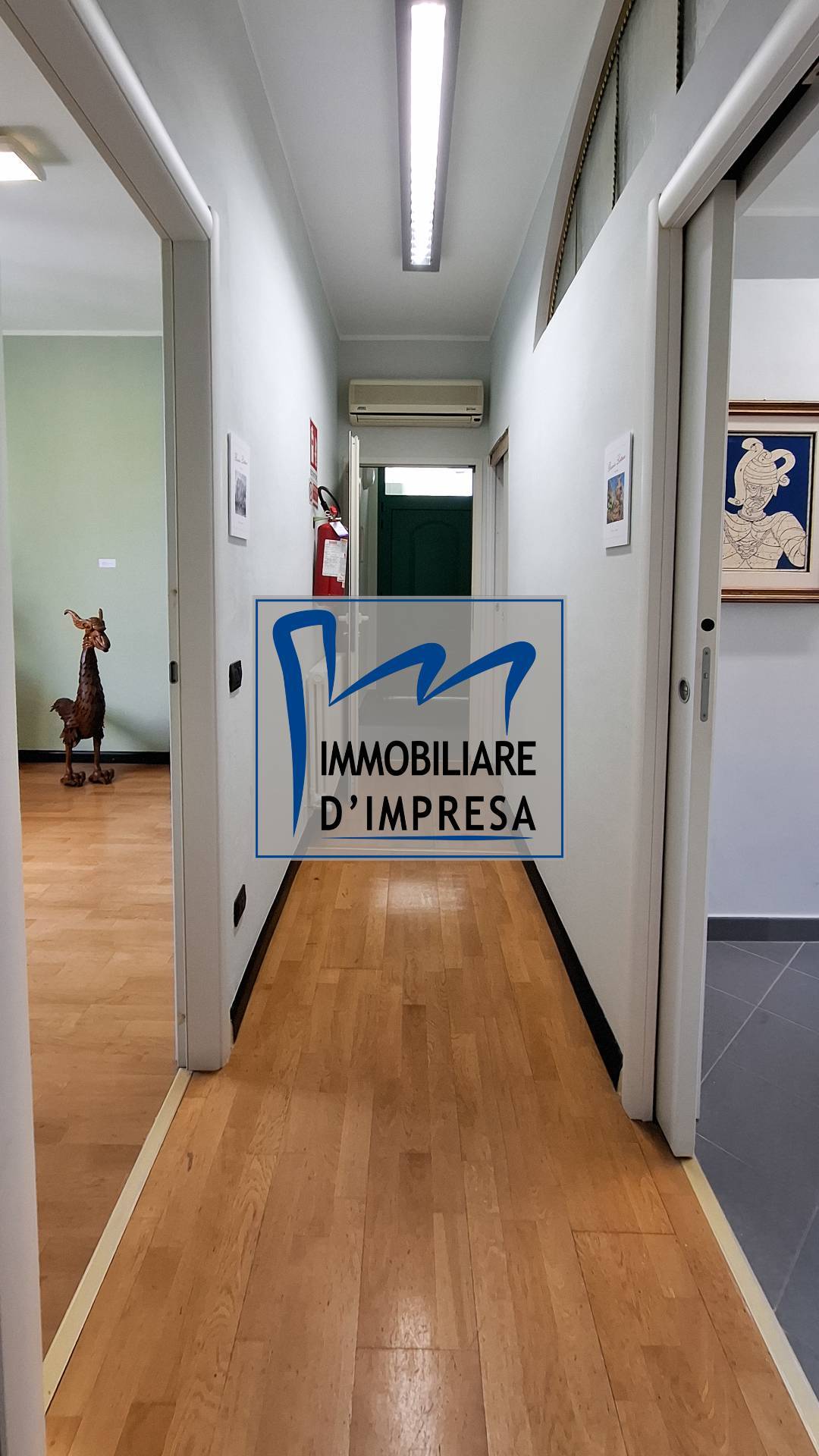 The unit consists of an 80 m2 commercial space with two street-facing windows, connected to the first floor with 5 large offices and two bathrooms, an open-plan attic floor with a bathroom and featuring exposed beams, and a basement level, ideal for courses and meetings. Each floor has its own entrance, via stairs and elevator. High-quality finishes, including sliding doors and PVC windows. The mezzanine and basement feature suspended ceilings, while the upper floor boasts oak parquet flooring. All rooms are heated and air-conditioned.